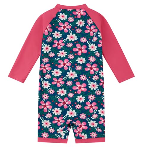 Baby Girl One Piece Swimsuit Sunsuit with Full-Length Zipper UPF 50+ Sun Protection Infant Swimwear